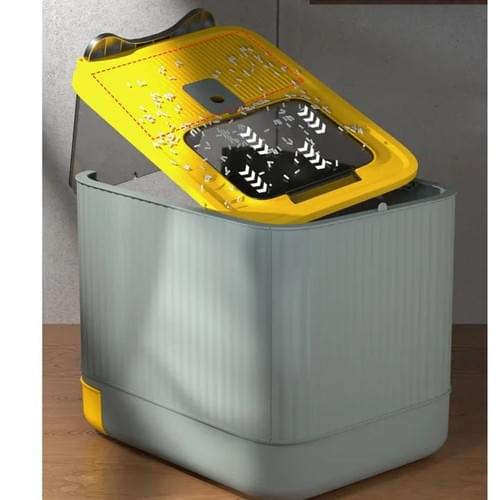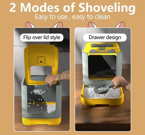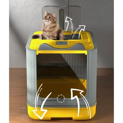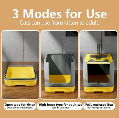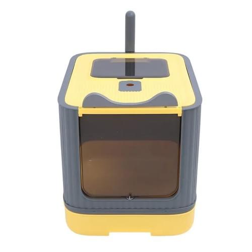 صندوق فضلات قطط مغلق بالكامل يتميز بتصميم عصري وعملي باللونين الأصفر والرمادي
