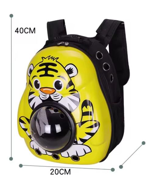 حقيبة ظهر أنيقة ومريحة لحمل حيوانك الأليف تتميز بتصميمها الفريد والمرح مصنوعة من مواد متينة وخفيفة الوزن، وتوفر تهوية ممتازة لضمان راحة حيوانك الأليف أثناء التنقل. العدسة الشفافة تسمح للحيوان الأليف بالاستمتاع بالمناظر المحيطة.
