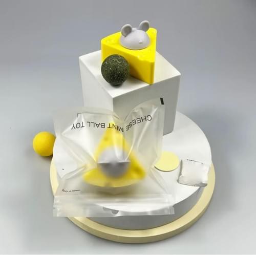 لعبة للقطط تحتوي على كرات من النعناع البري الطبيعي، وتأتي مع حامل يمكن تثبيته على الحائط.